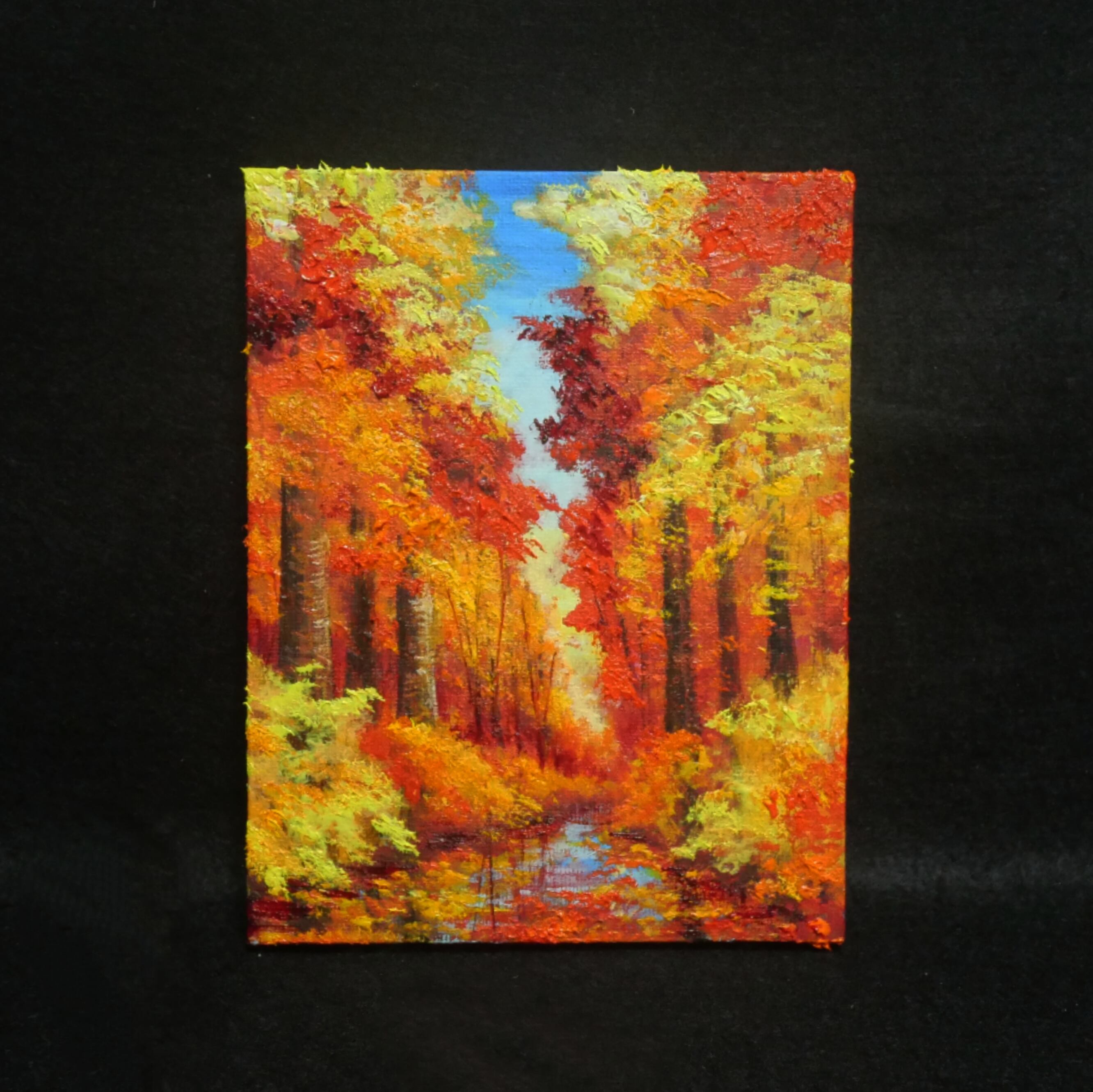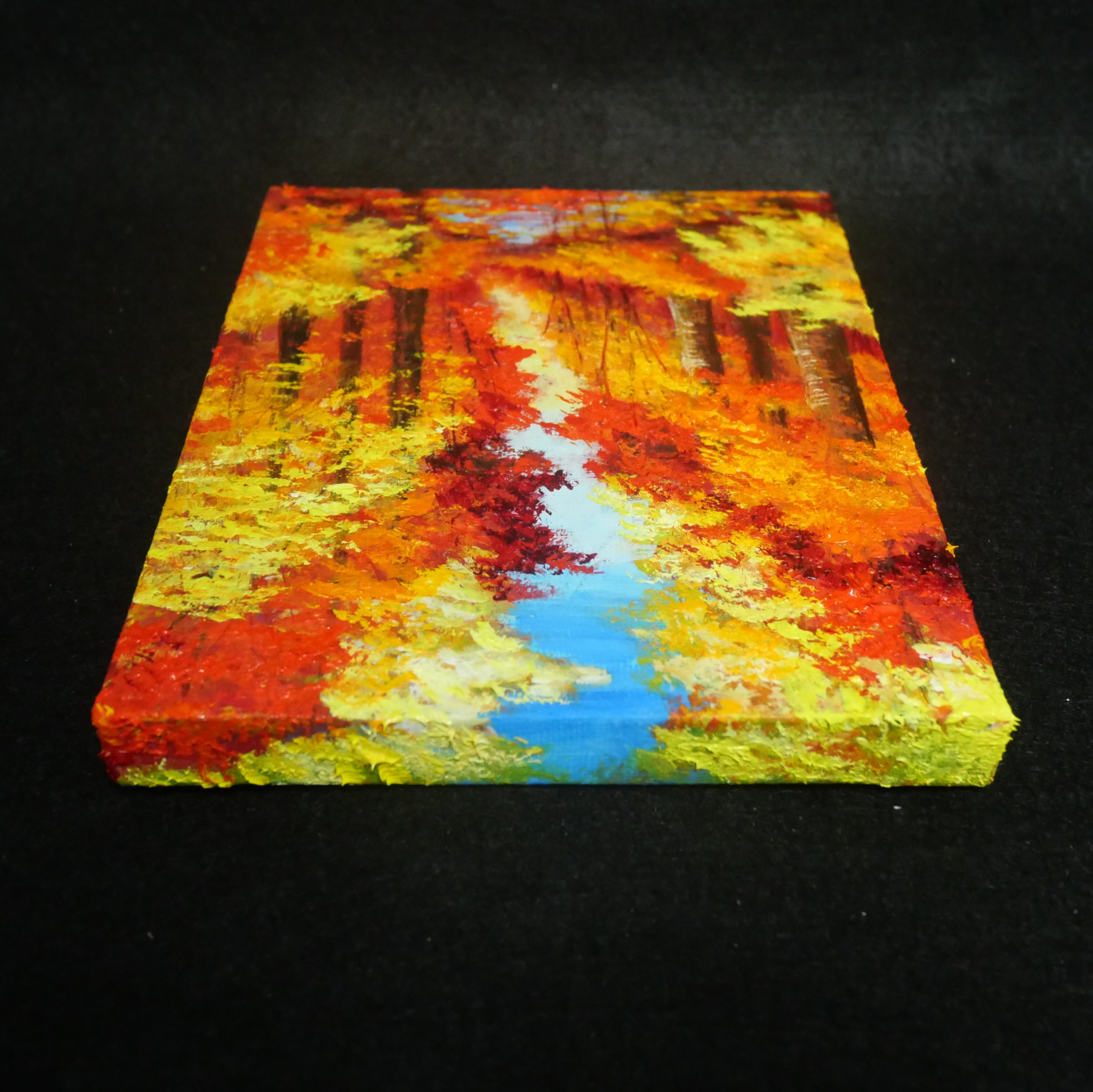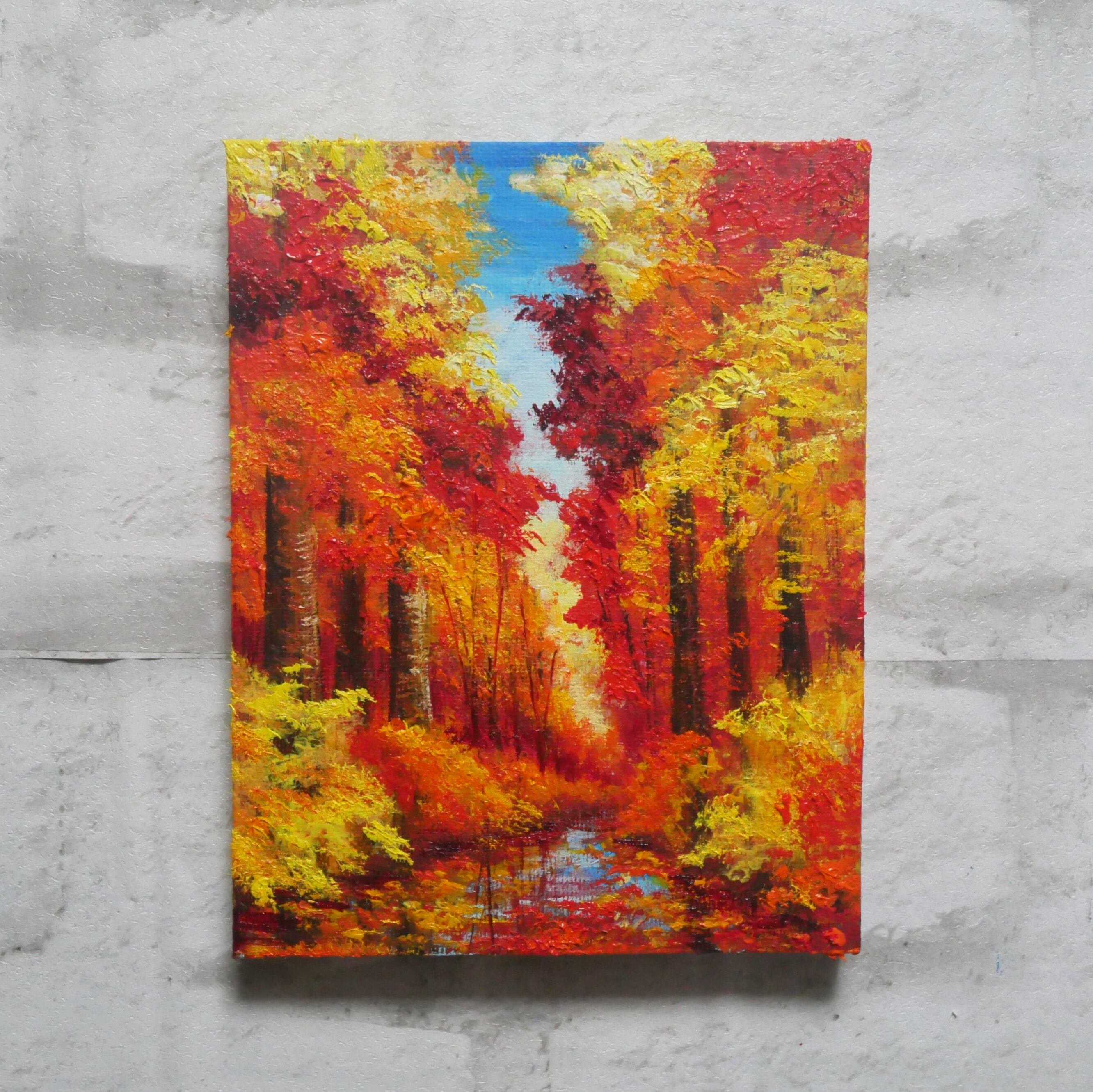 この油絵はF0号キャンバス(180mm×140mm)で、コンパクトなサイズ感ではありますが、その存在感は抜群です。お部屋やオフィスに飾ることで、秋の穏やかさと美しさを楽しむことができます。また、壁にかけることで、秋の温かい雰囲気を演出し、心を豊かにしてくれる空間を作り出します。