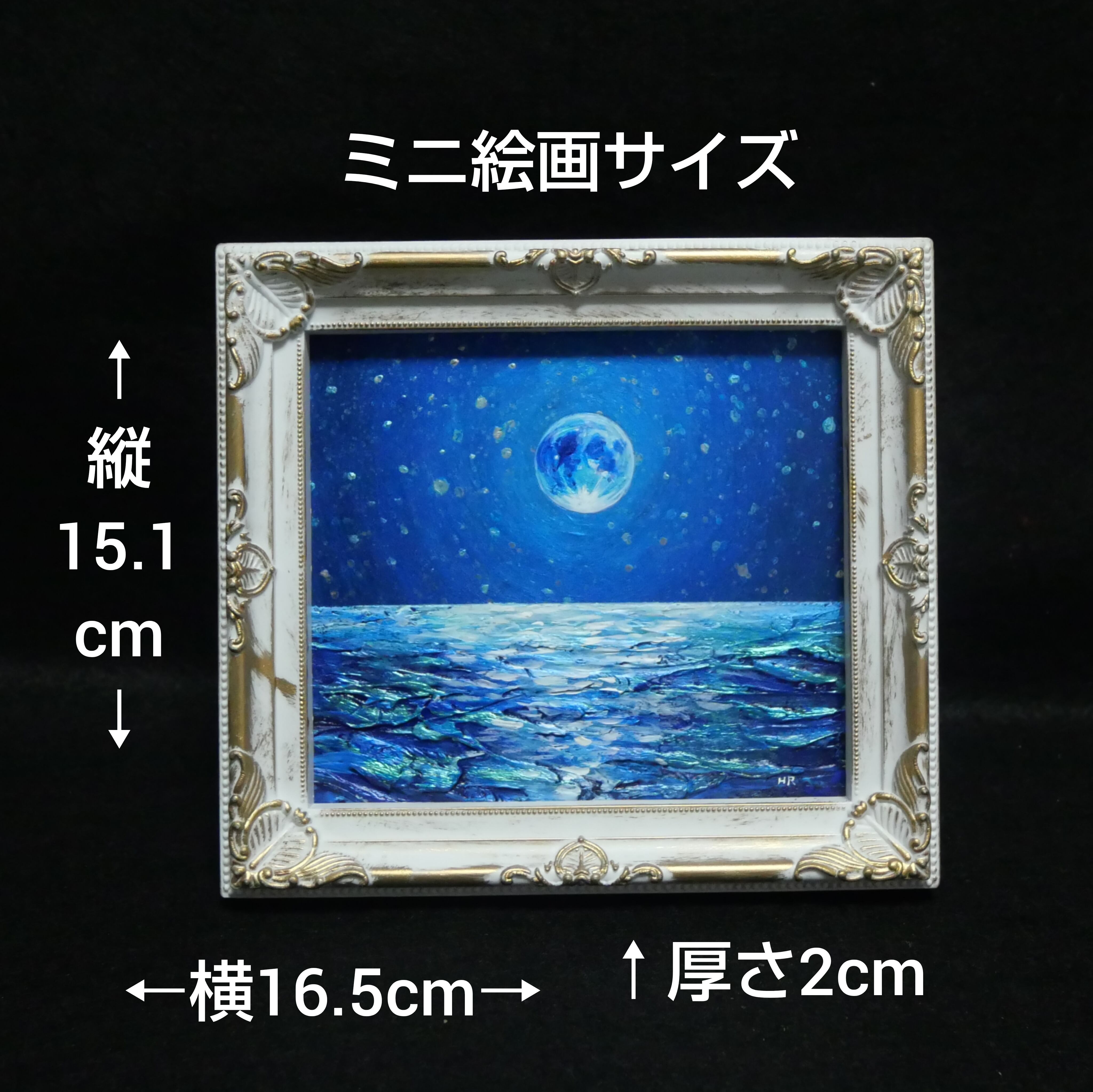 油絵 ミニ色紙 【スーパーブルームーンと海】
