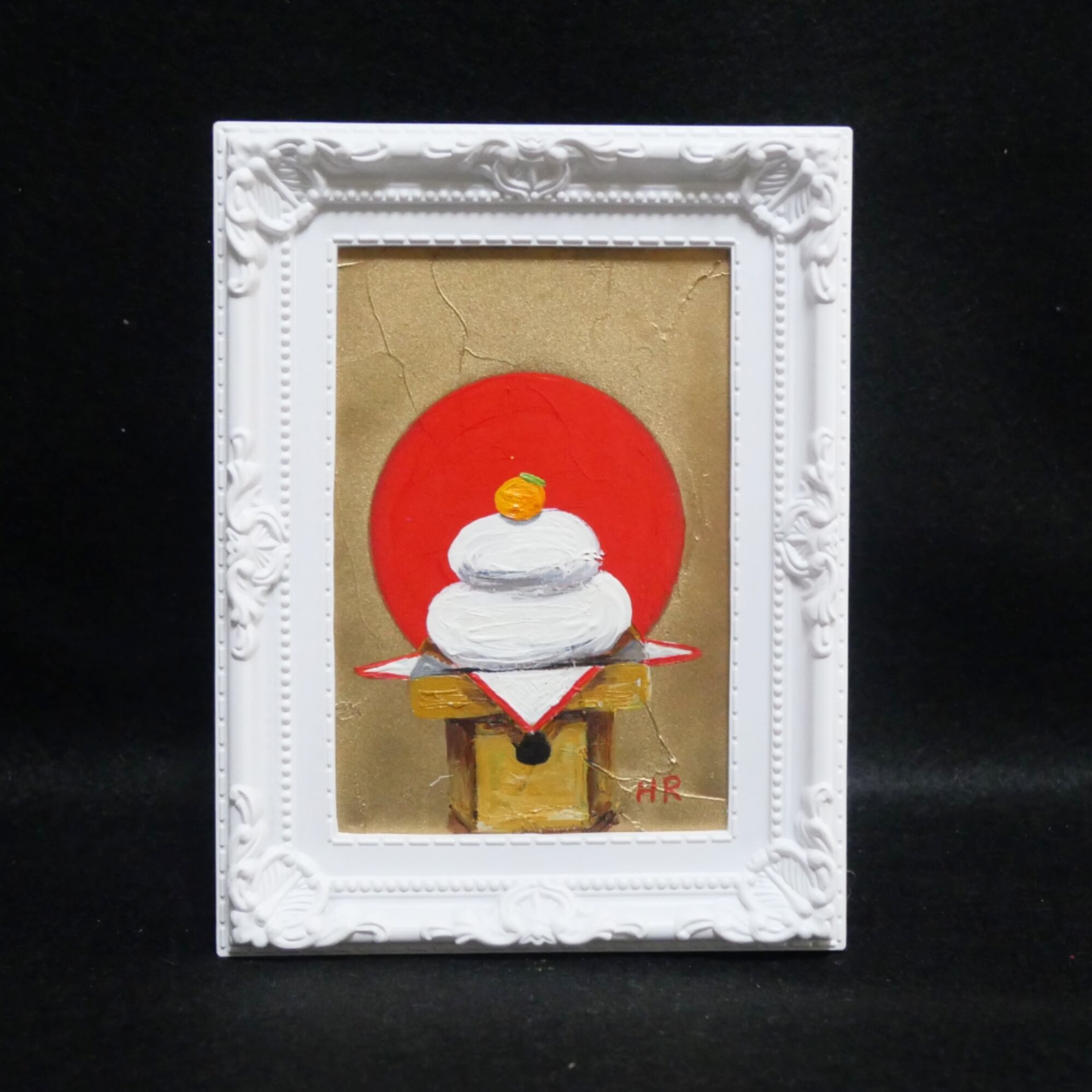 「鏡餅」は、金色の背景に赤い日の丸と美しい鏡餅を描いた華やかな油彩作品です。この一枚は、日本の伝統的な美しさを表現し、新年を祝う気持ちをもたらします。鮮やかな色合いがあなたのインテリアにお正月の雰囲気を加えることでしょう。