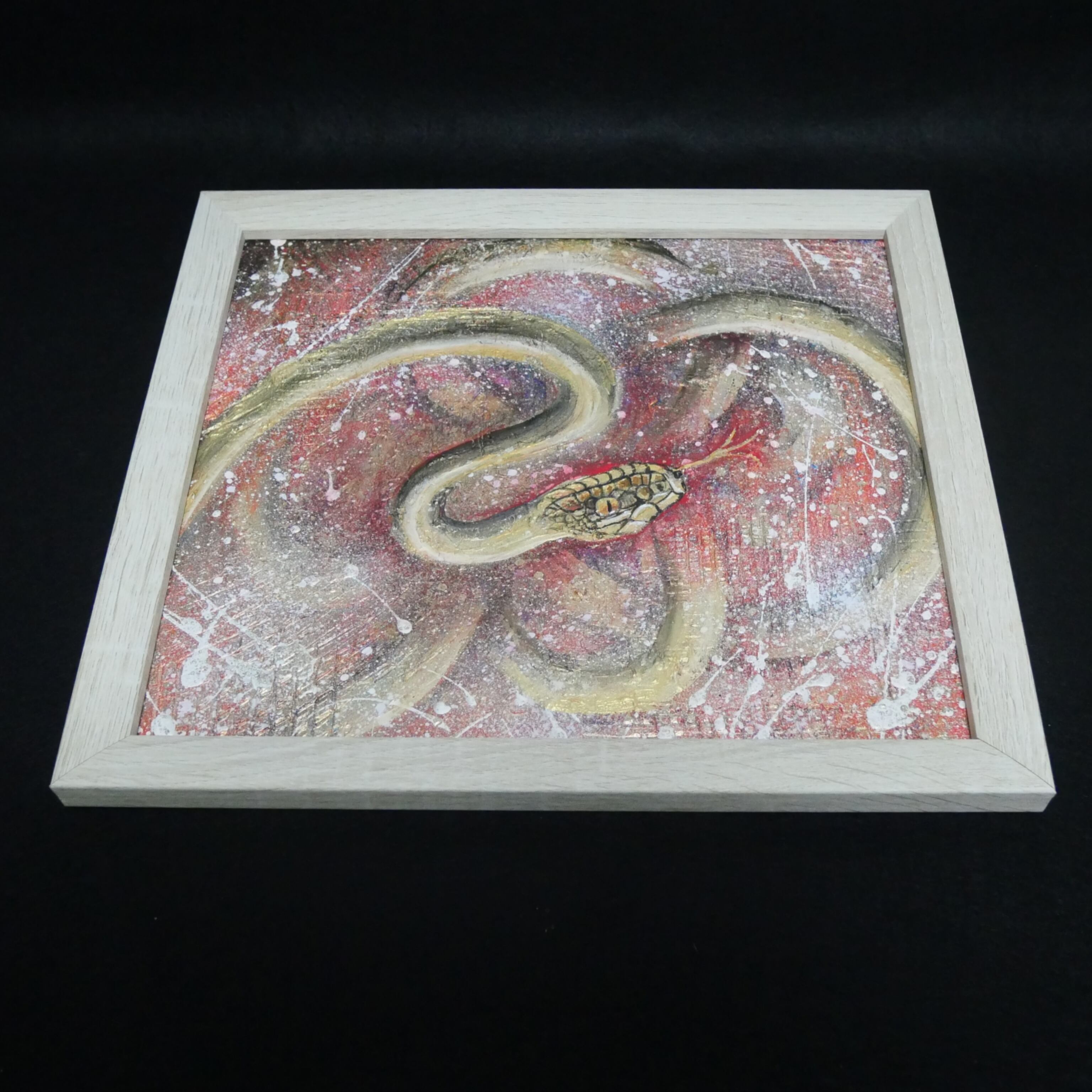 高品質な油絵の具には【ホルベイン】を使い、アクリル絵の具には【リキテックス】を使用しています。この組み合わせにより、鮮やかな色合いと深みが表現され、見るたびに心を豊かにする作品に仕上がっています。この「巳年」が、あなたのインテリアに幸運をもたらすことを願っています。