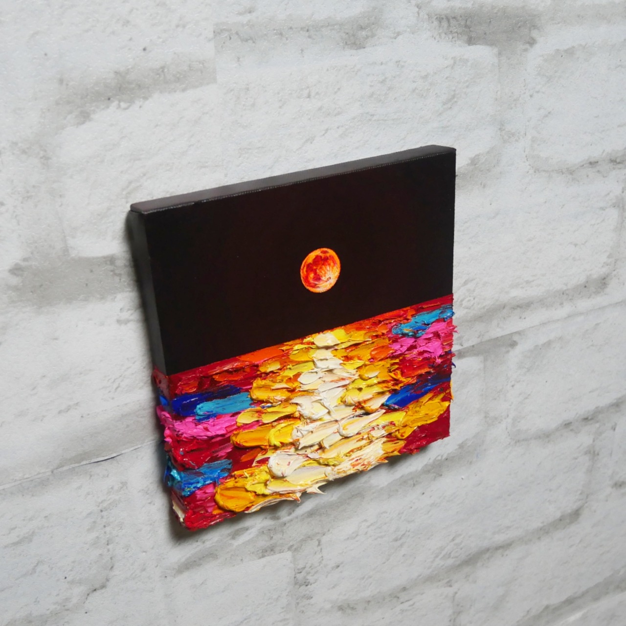 【作品名】:油絵 絵画 アートパネル【オレンジの満月】