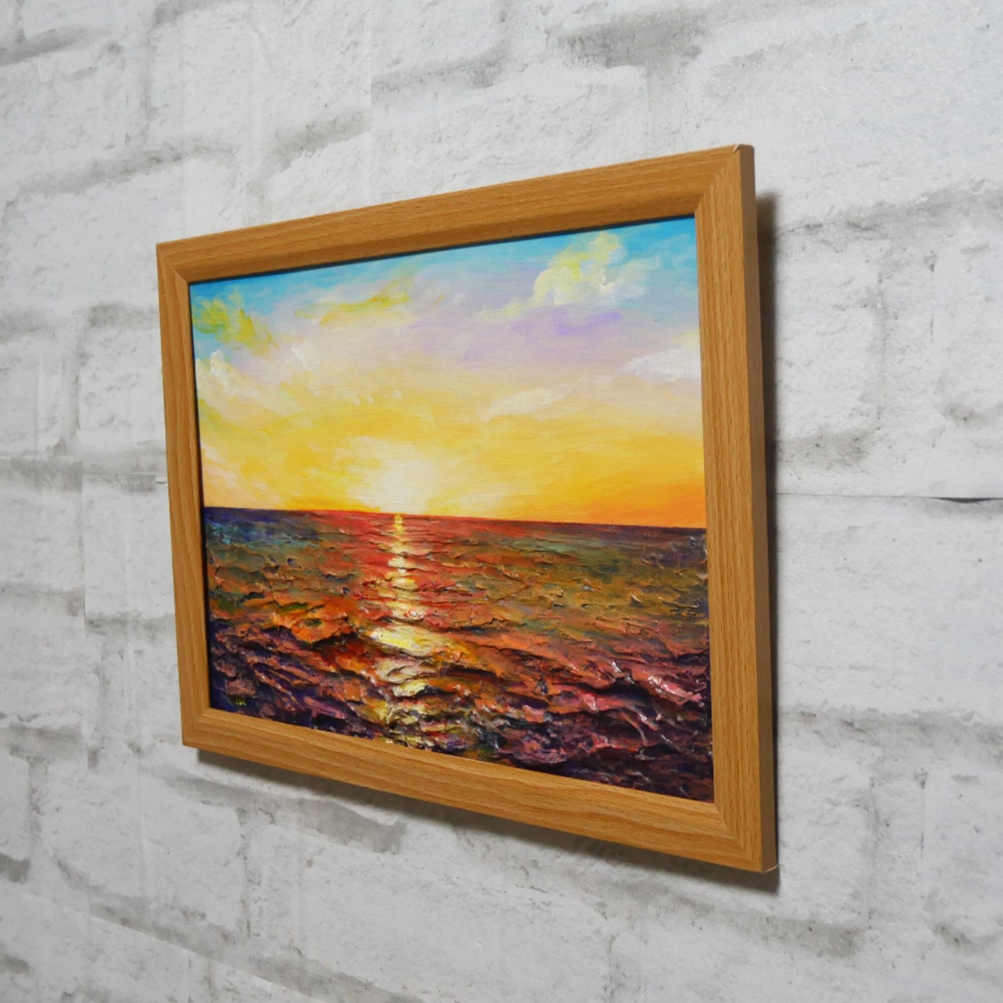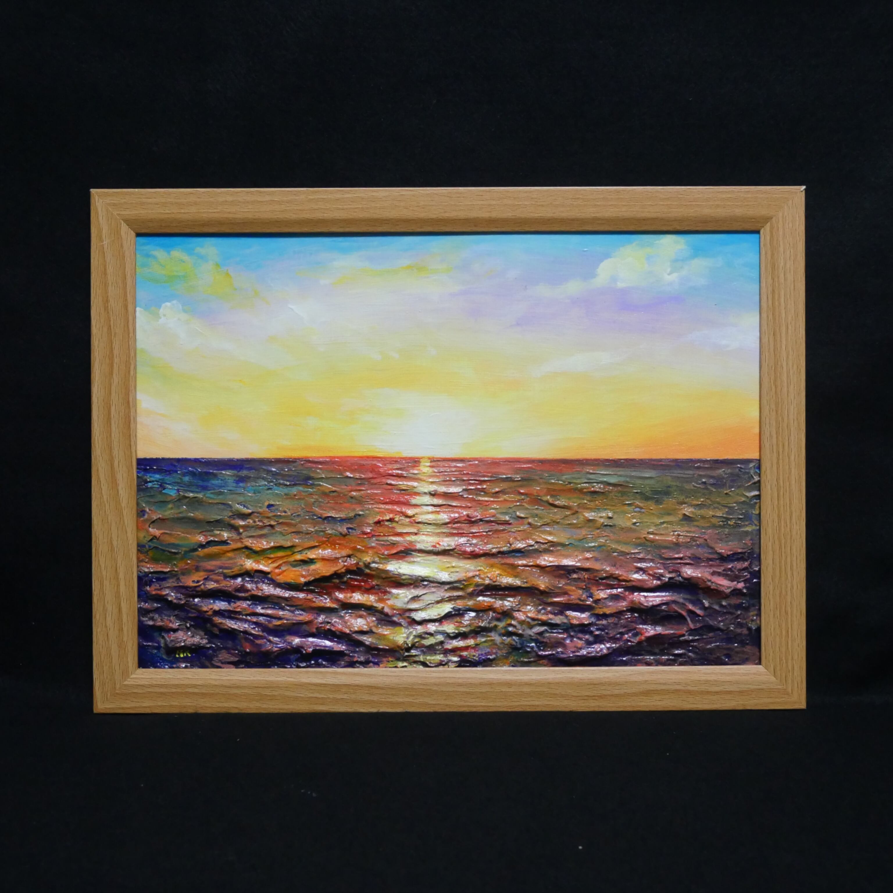 【作品名】:油絵 油彩 【朝日に輝く海】