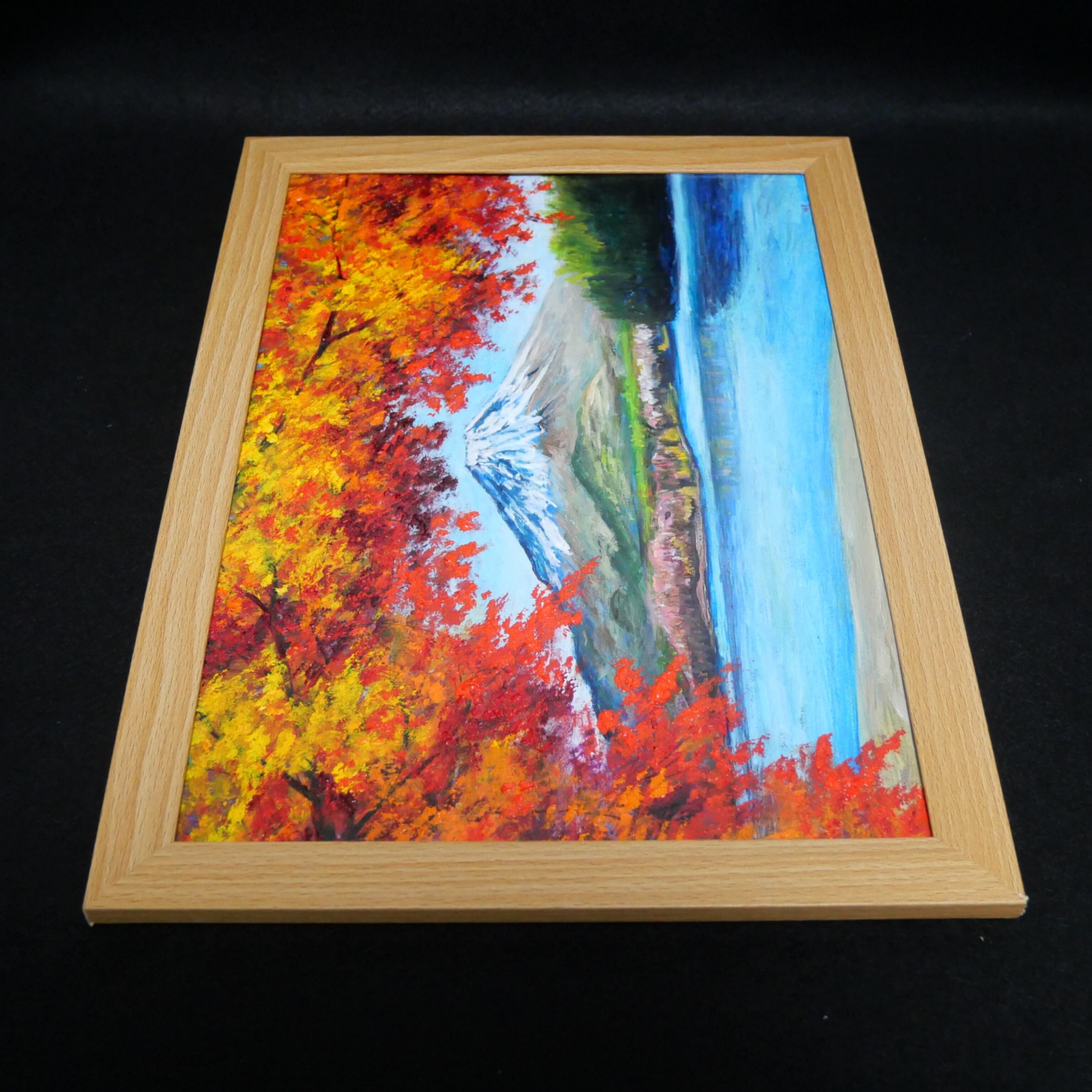 「富士山と紅葉」は、紅葉の美しい彩りと西湖の穏やかな風景を背景に、雄大な富士山を描いた特別な油彩作品です。この作品は、四季折々の自然の移ろいを見事に表現しており、見る人に安らぎと感動を提供します。飾ることで、あなたの空間に秋の豊かな雰囲気を与えます。
