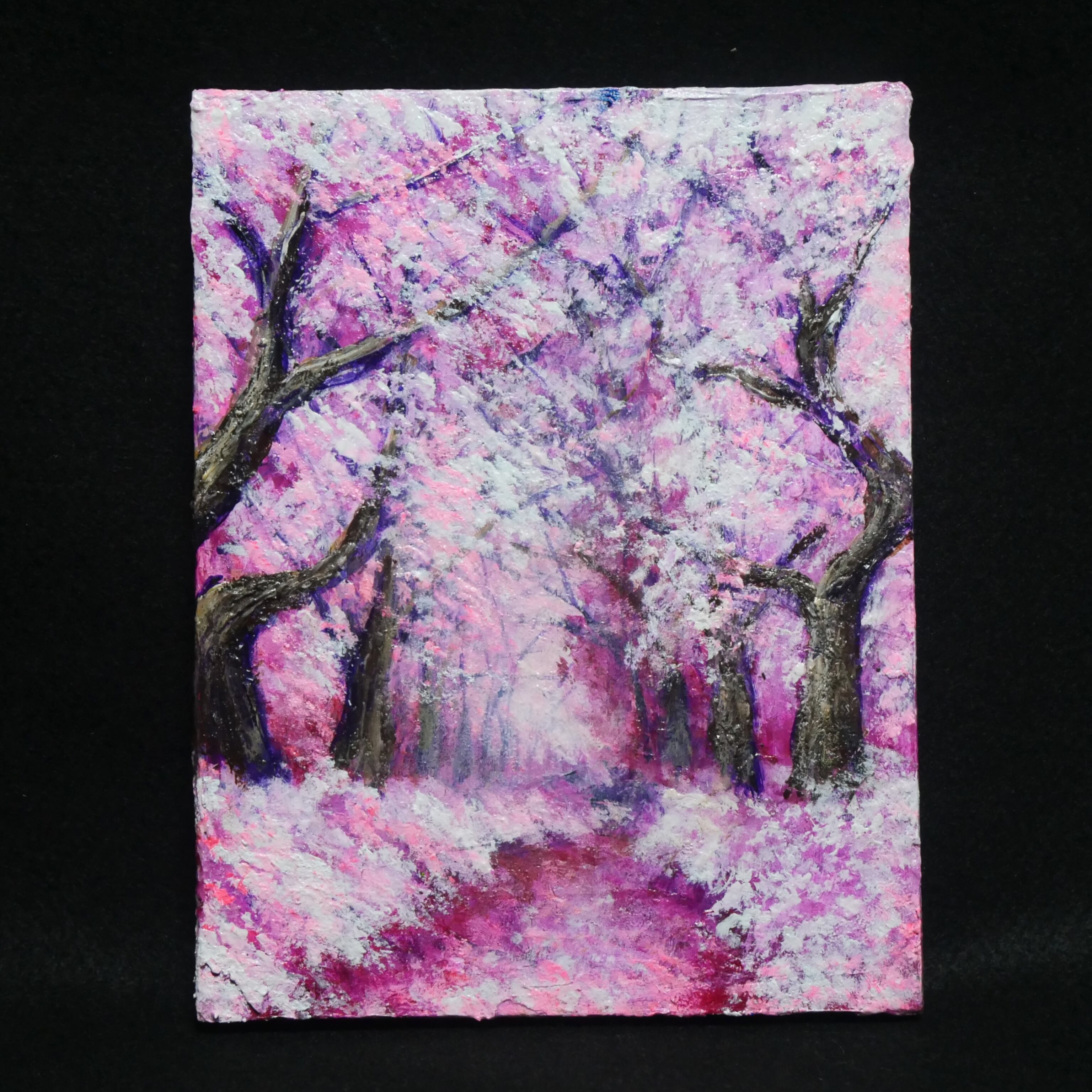 この油絵はF0号キャンバス(180mm×140mm)で、コンパクトながらもその存在感は抜群です。お部屋やオフィス、心を落ち着けたいスペースに飾ることで、春の陽気と爽やかさを楽しむことができます。また、壁にかけることで、華やかさとともに春の雰囲気を演出してくれます。