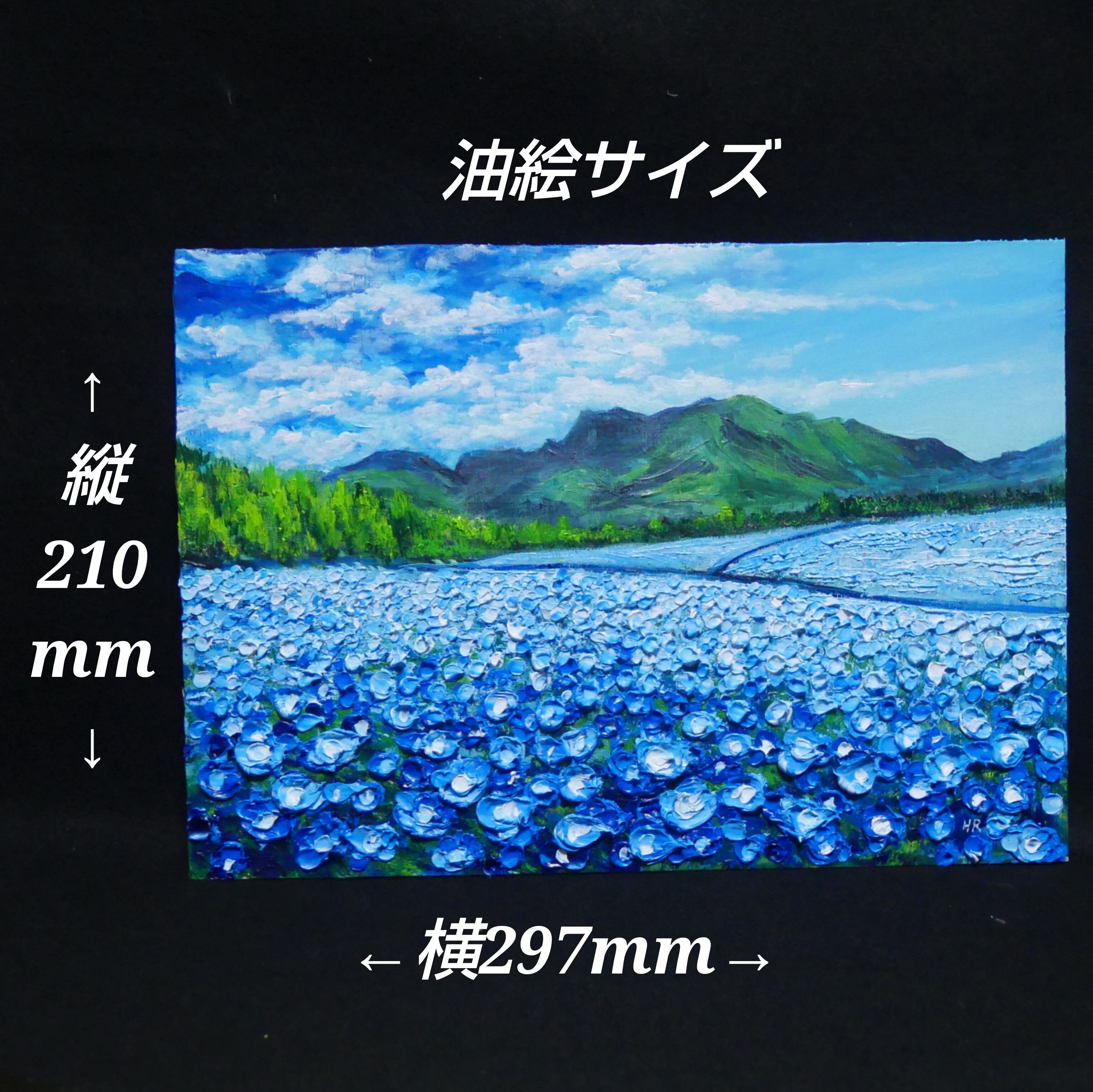 油絵 油彩 油彩画 絵 絵画【くじゅう花公園のネモフィラ畑】